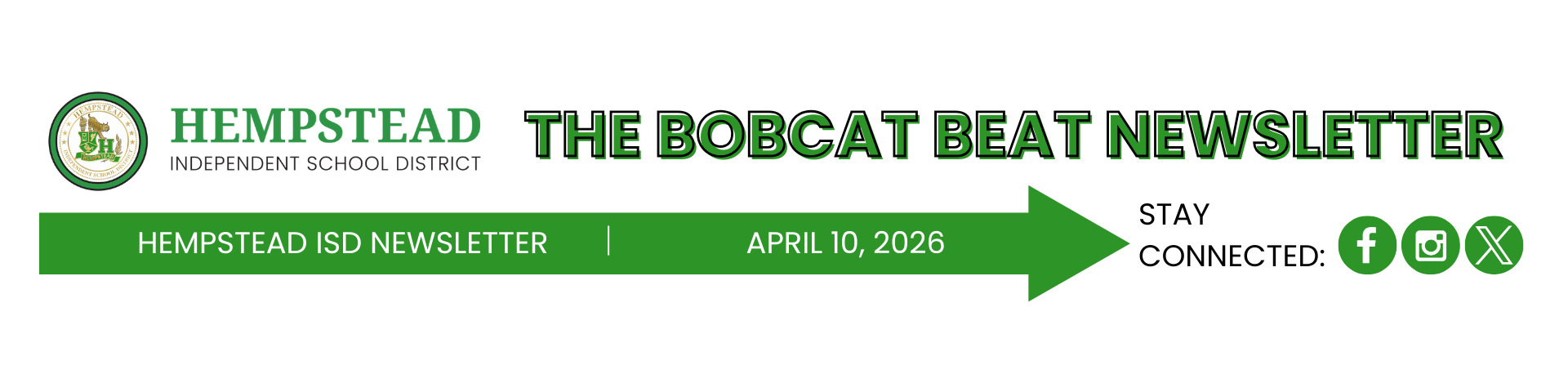 Please stay connected with Hempstead ISD by visiting the District News pages to stay up to date on all the great things happening in our district. You can also connect with us on Facebook, Twitter, and Instagram.